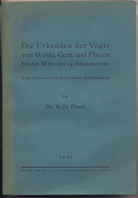 Flach, Willy: Die Urkunden der Vögte von Weida, Gera und Plauen bis zur Mitte des 14. Jahrhunderts. Eine diplomatisch-historische Untersuchung. Greiz: Vereinsbuchdruckerei, 1930. 275 S. OBr. [Bestell-Nr. 8097]
