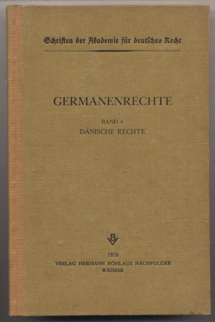 Schwerin, Claudius Frhr. von: Germanerechte, Band 8: Dänische Rechte. Weimar: Hermann Böhlaus Nachfolger, 1938. 222 S. OHLn. (Schriften der Akademie für Deutsches Recht). [Bestell-Nr. 8098]