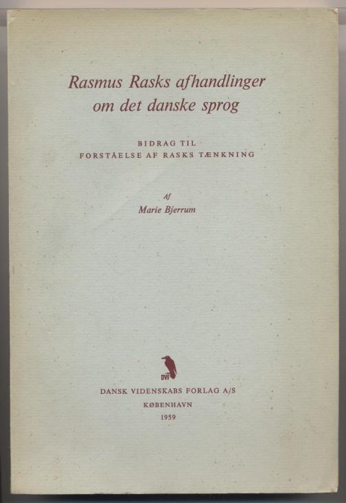 Bjerrum, Marie: Rasmus Rasks afhandlinger om det danske sprog. Bidrag til forståelse af Rasks tænkning. København: Dansk Videnskabs Forlag, 1959. 272 S. OBr. [Bestell-Nr. 8102]