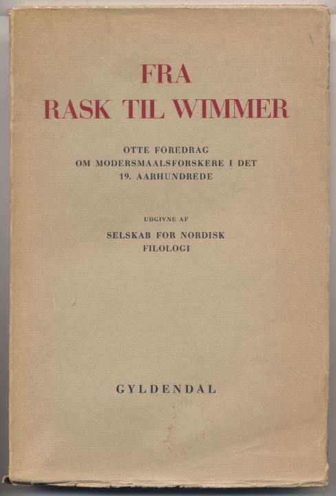 Fra Rask til Wimmer. Otte Foredrag om Modersmaalsforskere i det 19. Aarhundrede. Udgivne af Selskab for Nordisk Filologi. København: Gyldendal, 1937. 146 S. OBr. [Bestell-Nr. 8104]