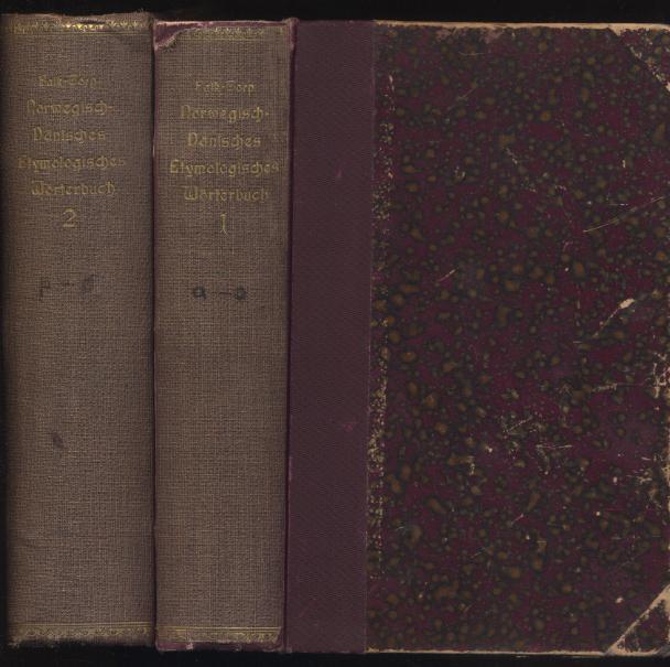 Falk, H.S. / Torp, Alf: Norwegisch-dänisches etymologisches Wörterbuch. Auf Grund der Übersetzung von H. Davidsen neu bearbeitete deutsche Ausgabe mit Literaturnachweisen strittiger Etymologien sowie deutschem und altnordischem Wörterverzeichnis. Heidelberg: Carl Winter, 1910, 1911. 808, 809-1722 S. HLn. der Zeit. (Germanische Bibliothek, I. Sammlung Germanischer Elementar- und Handbücher, IV. Reihe: Wörterbücher; Erster Band). Einbände berieben. [Bestell-Nr. 8106]