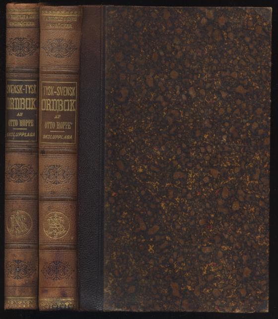 Hoppe, Otto: Tysk-svensk ordbok / Svensk-tysk ordbok. Skolupplaga. Stockholm: P.A. Norstedt & Söners, 1904, 1905. 586, 391 S. OHLdr. Erster Band am Fußschnitt etwas wellig durch alten Wasserrand. Jeweils Besitzereintrag auf Titel. Andra stereotyperade upplagan. [Bestell-Nr. 8108]