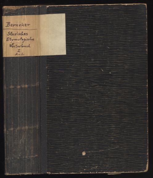 Berneker, Erich: Slavisches etymologisches Wörterbuch. Erster Band A-L. Heidelberg: Carl Winter, 1913. 760 S. HLn. der Zeit. EINZELBAND!!! (Indogermanische Bibliothek, Sammlung Slavischer Lehr- und Handbücher, II. Reihe: Wörterbücher; Erster Band). Fast durchgehender, alter Wasserschaden, Papier wellig. [Bestell-Nr. 8110]