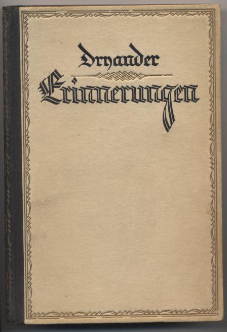 Dryander, Ernst von: Erinnerungen aus meinem Leben. Bielefeld: Velhagen & Klasing, 1926. 363 S. OHLn. Ausgestrichner privater Stempel auf dem Vorsatz. Vierte erweiterte Auflage (neuntes und zehntes Tausend). [Bestell-Nr. 8117]