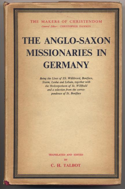 [Talbot, C.H.:] The Anglo-Saxon Missionaries in Germany. Being the Lives of SS. Willibrord, Boniface, Sturm, Leoba und Lebuin, together with the Hodoeporicon of St. Willibald and a selection from the correspondence of St. Boniface. Translated and edited by C.H. Talbot. London: Sheed and Ward, 1954. 234 S. OLn. OU. [Bestell-Nr. 8118]