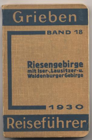 Riesengebirge mit Iser-, Lausitzer, Bober-Katzbach-Gebirge und Waldenburger Bergland. Angaben für Automobilisten und Wintersportler. Berlin: Albert Goldschmidt, 1930. 204 S. OBr. (Grieben Reiseführer; Band 18). Rückengelenke leicht berieben. Vollständig; alle Karten vorhanden. 31. Auflage. [Bestell-Nr. 8230]
