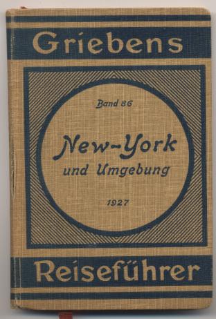 New York und Umgebung. Berlin: Albert Goldschmidt, 1927. 181 S. OLn. (Griebens Reiseführer; Band 86). Vorderes Rückengelenk angeplatzt. Vollständig: alle Karten vorhanden. 6. Auflage. [Bestell-Nr. 8231]