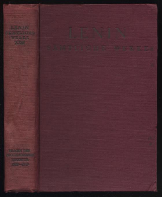 Lenin, W.I.: Fragen der proletarischen Diktatur. Die erste Periode der Entwicklung und Festigung der Sowjetmacht 1918–1919. Moskau: Verlag für fremdsprachige Literatur, 1940. 680 S. OLn. (Sämtliche Werke in 39 Bänden; Band XXIII). [Bestell-Nr. 8240]