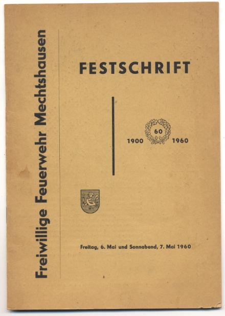 Freiwillige Feuerwehr Mechtshausen 199 – 1960. Festschrift. Freitag, 6. Mai und Sonnabend, 7. Mai. [Mechtshausen:] [1960]. [20 S.] OHeft. [Bestell-Nr. 8247]