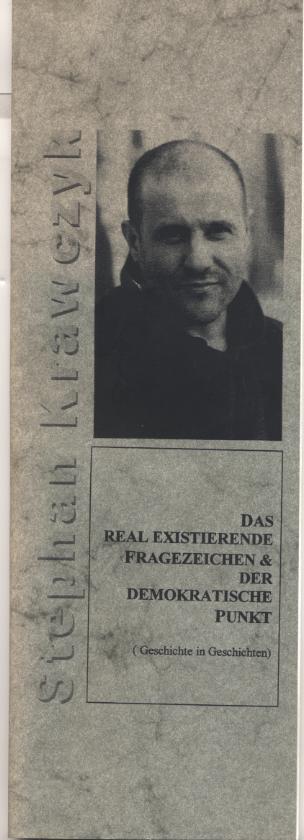 Krawczyk, Stephan: Das real existierende Fragezeichen & der demokratische Punkt. Geschichte in Geschichten. o.O. Wilhelm Nepit, 1999. 46 S. OHeft. [Bestell-Nr. 8254]