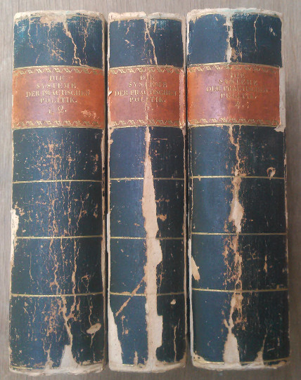 Vollgraff, Karl: Die Systeme der praktischen Politik im Abendlande. Erster Theil: Oekumensiche Politik; Zweiter Theil: Antike Politik; Dritter Theil: Charakteristik oder Charakter- und Kultur-Statistik; Vierter Theil: Moderne Politik. Giessen: Ferber, 1828 f. 198+430, 523, 740 S. Pp. der Zeit. Abgegriffen, Kanten berieben. [Bestell-Nr. 4318]