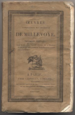 [Millevoye, Charles Hubert:] Oeuvres posthumes de Millevoye, dédiées au roi. Tom 1. Paris: Ladvocat, 1823. 329 S. OBr. EINZELBAND!! Eingeklebtes Etikett 'Mlle. Amélie de Boisrenard'. Unbeschnitten [Bestell-Nr. 8213]