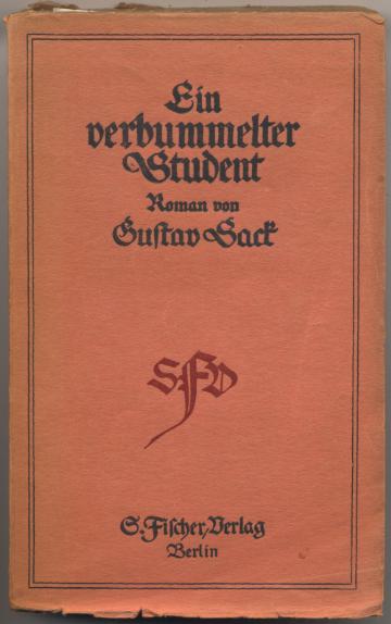 Sack, Gustav: Ein verbummelter Student. Roman. Berlin: S.Fischer, 1917. 299 S. OBr. EA WG 2 [Bestell-Nr. 5140]
