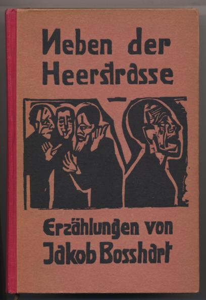 Boßhart, Jakob: Neben der Heerstraße. Erzählungen. Mit Holzschnitten von E. L. Kirchner. Zürich: Grethlein & Co., [1923]. 434 S. OHLn. Unscheinbares Exlibris im hinteren Innendeckel. EA WG 25 [Bestell-Nr. 5633]