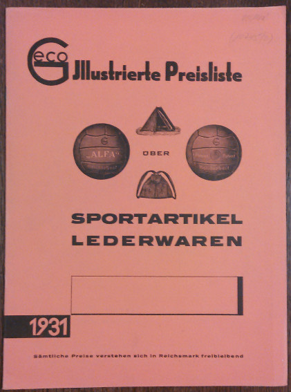 Geco. Illustrierte Preisliste über Sportartikel, Lederwaren 1931. 32 S. OHeft. [Warenkatalog für Sport, Jagd und Reise]. [Bestell-Nr. 3859]
