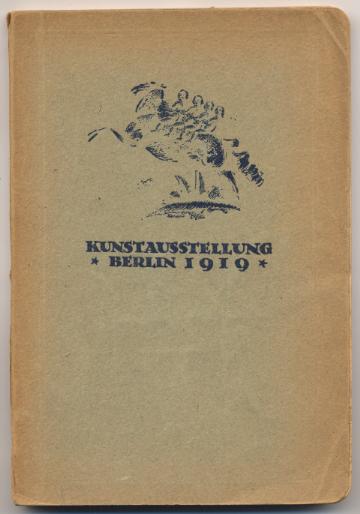 Kunstausstellung Berlin im Landesausstellungsgebäude. Saal Nr. 3 bis 19: Abteilung des Vereins Berliner Künstler; Saal Nr. 20 bis 29 Abteilungen der Berliner Sezession, Freien Sezession und Novembergruppe. Berlin: Verlag Kunstausstellung, 1919. 84+72 S. OBr. Berieben, Rücken fehlen unten knapp drei Zentimeter. [Bestell-Nr. 4704]