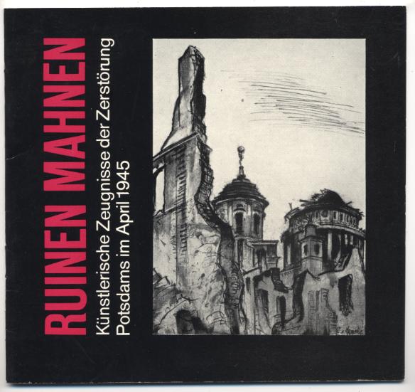 Ruinen mahnen. Künstlerische Zeugnisse der Zerstörung Potsdams im April 1945. Potsdam: 1985. 24 S. OHeft. Ausstellung des Potsdam-Museums und der Staatlichen Schlösser und Gärten Potsdam-Sanssouci im Pavillon auf der Freundschaftsinsel vom 13. April bis 12. Mai 1985. [Bestell-Nr. 7528]