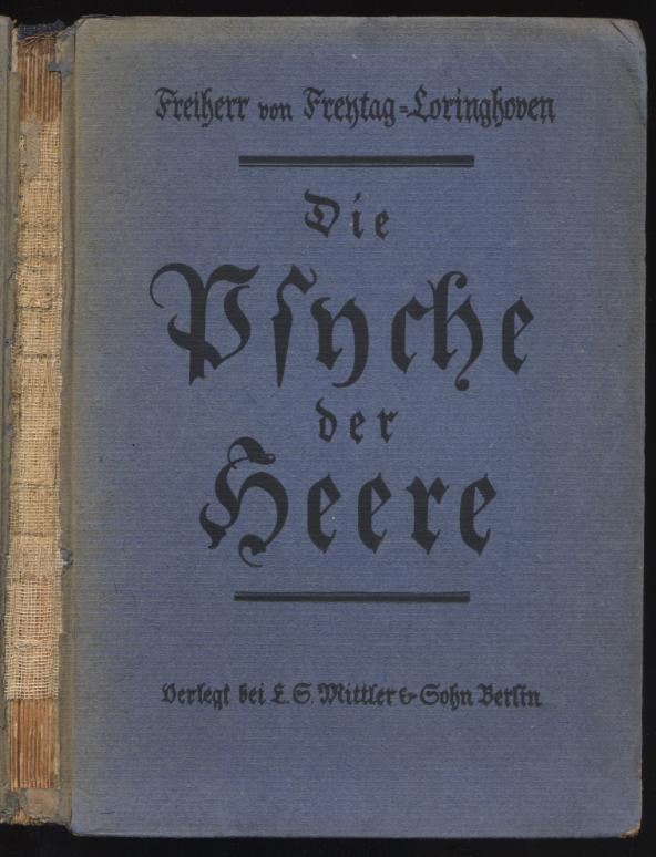 Freytag-Loringhoven: Die Psyche der Heere. Berlin: Mittler, 1923. 175 S. OPp. RÜCKEN FEHLT!!! [Bestell-Nr. 5281]