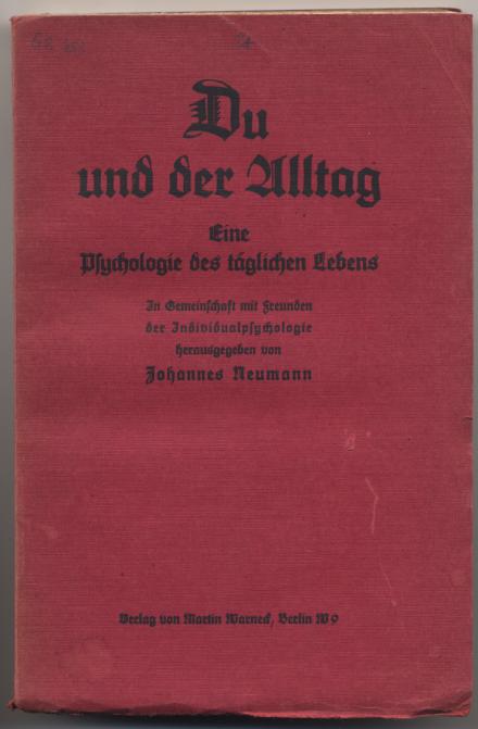 Neumann, Johannes: Du und der Alltag. Eine Psychologie des täglichen Lebens. In Gemeinschaft mit Freunden der Individualpsychologie herausgegeben. Berlin: Warneck, 1926. 270 S. OBr. Rücken etwas verblichen. [Bestell-Nr. 5457]
