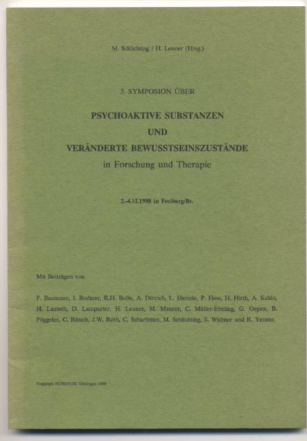 3. Symposion über psychoaktive Substanzen und veränderte Bewusstseinszustände in Forschung und Therapie. 2.-4.12. 1988 in Freiburg/Br. Hrsg.: M. Schlichting, H. Leuner. Göttingen: 1989. 62 S. OBr. [Bestell-Nr. 6114]