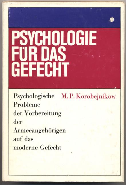 Korobejnikow, M.P.: Psychologie für das Gefecht. Psychologische Probleme der Vorbereitung der Armeeangehörigen auf das moderne Gefecht. Berlin: Militärverlag, 1977. 192 S. OLn. OU. Umschlag berieben. 2., vom Autor durchgesehene Auflage. 7.-11. Tausend. [Bestell-Nr. 6765]