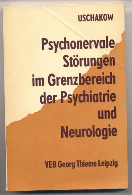 Uschakow, Gennadi Konstantinowitsch: Psychonervale Störungen im Grenzbereich der Psychiatrie und Neuroöogie. Übersetzung aus dem Russischen von Eckhard Umann, Wissenschaftlicher Redakteur der deutschsprachigen Ausgabe Heinz A. F. Schulze. Leipzig: Georg Thieme, 1982. 287 S. OBr. Knickspur im Deckel. [Bestell-Nr. 6965]