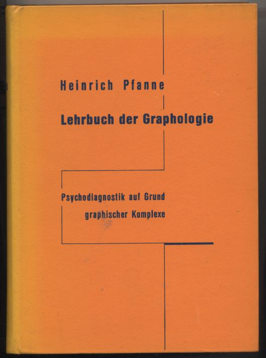 Pfanne, Heinrich: Lehrbuch der Graphologie. Psychodiagnostik auf Grund graphischer Komplexe. Berlin: Walter de Gruyter, 1961. 516 S. OLn. Inklusive Schriftprobenheft, 45 S. und Tabellenheft, 74 S. [Bestell-Nr. 8303]